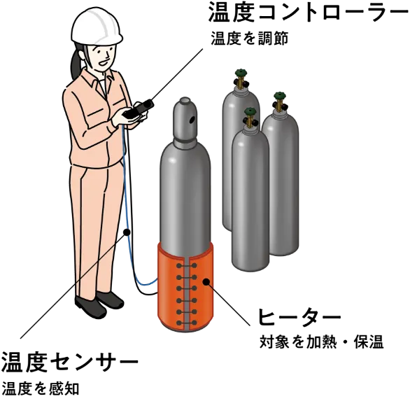 ヒーターを安全にお使いいただくには、ヒーター本体の他に、温度コントローラー・温度センサーが必要です。
