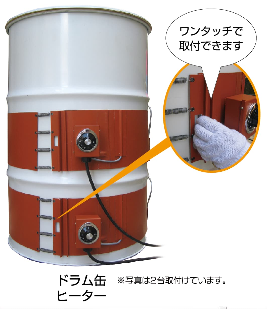 ドラム缶を直接温めて、溶剤を扱いやすくするヒーター。