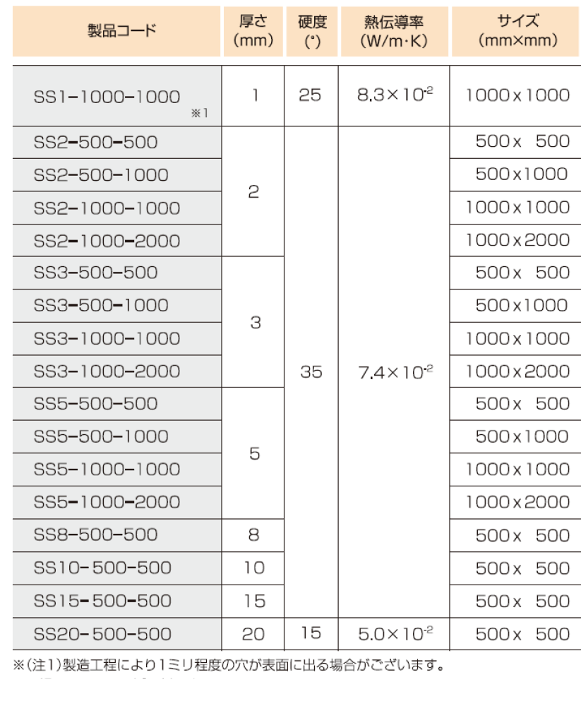 シリコーンスポンジ シートタイプ SSP15-500-500