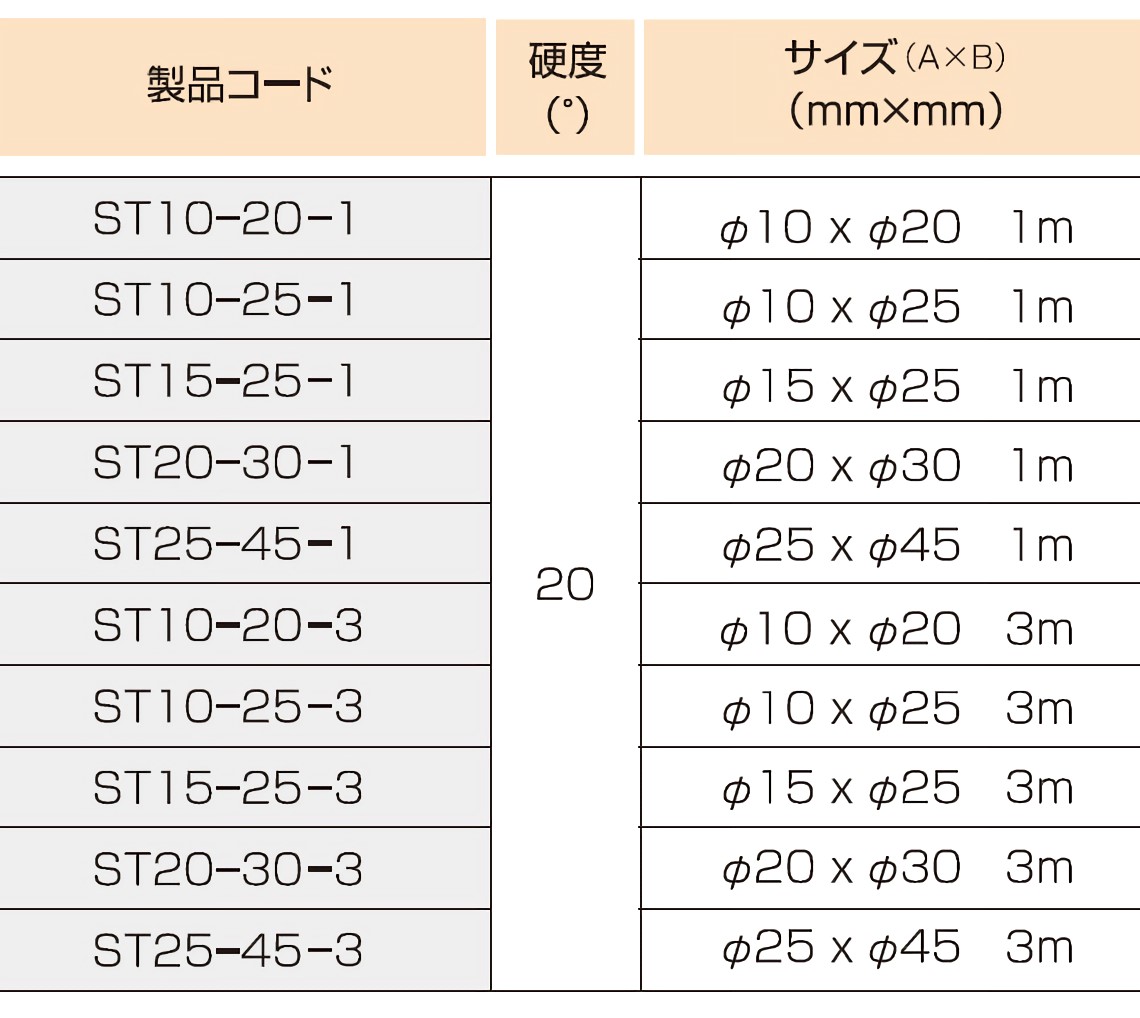 シリコーンスポンジ丸チューブ ST20-30-30-20HS