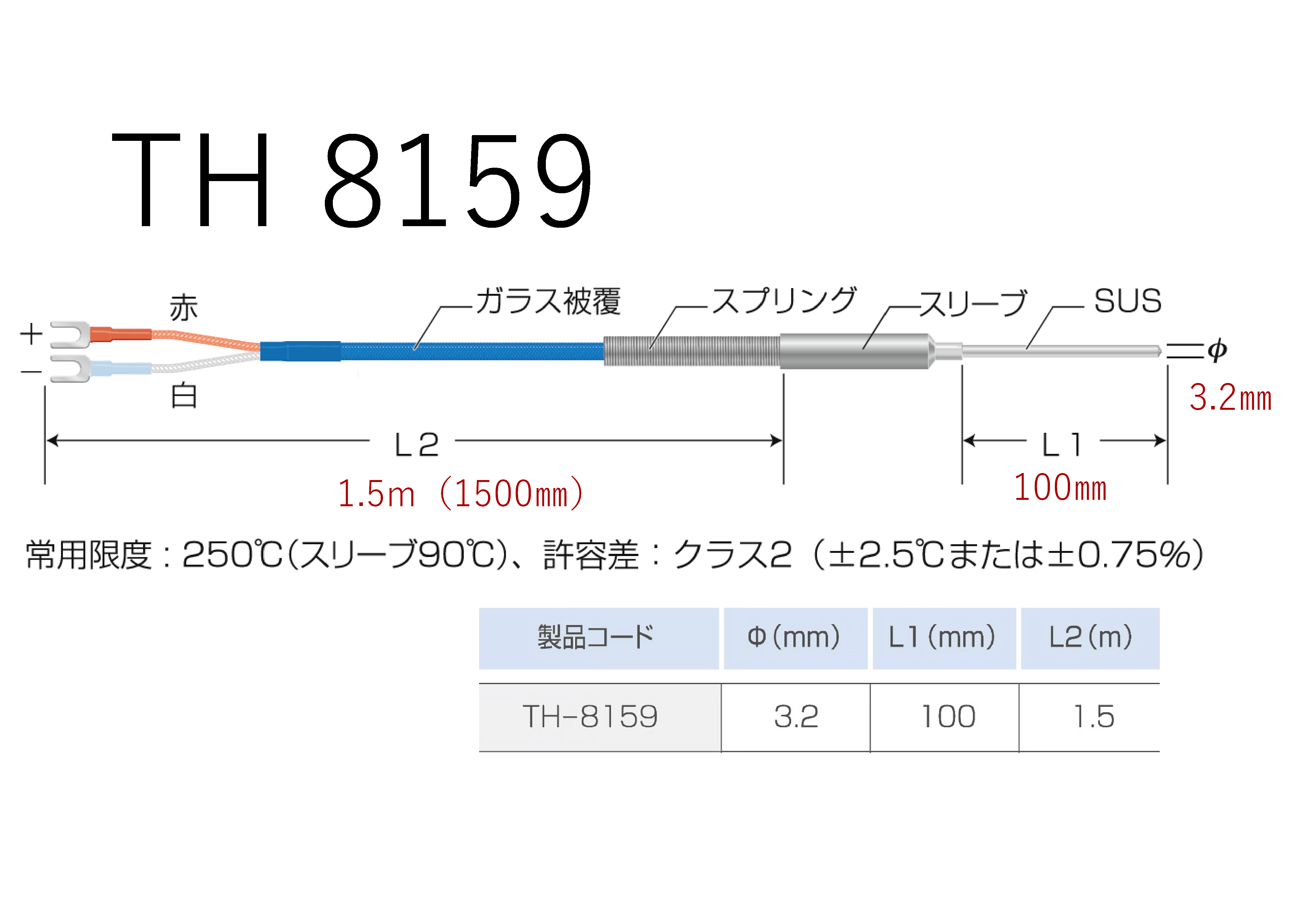 サイズ | φ3.2mm/L1(100mm)/L2(1.5m) |