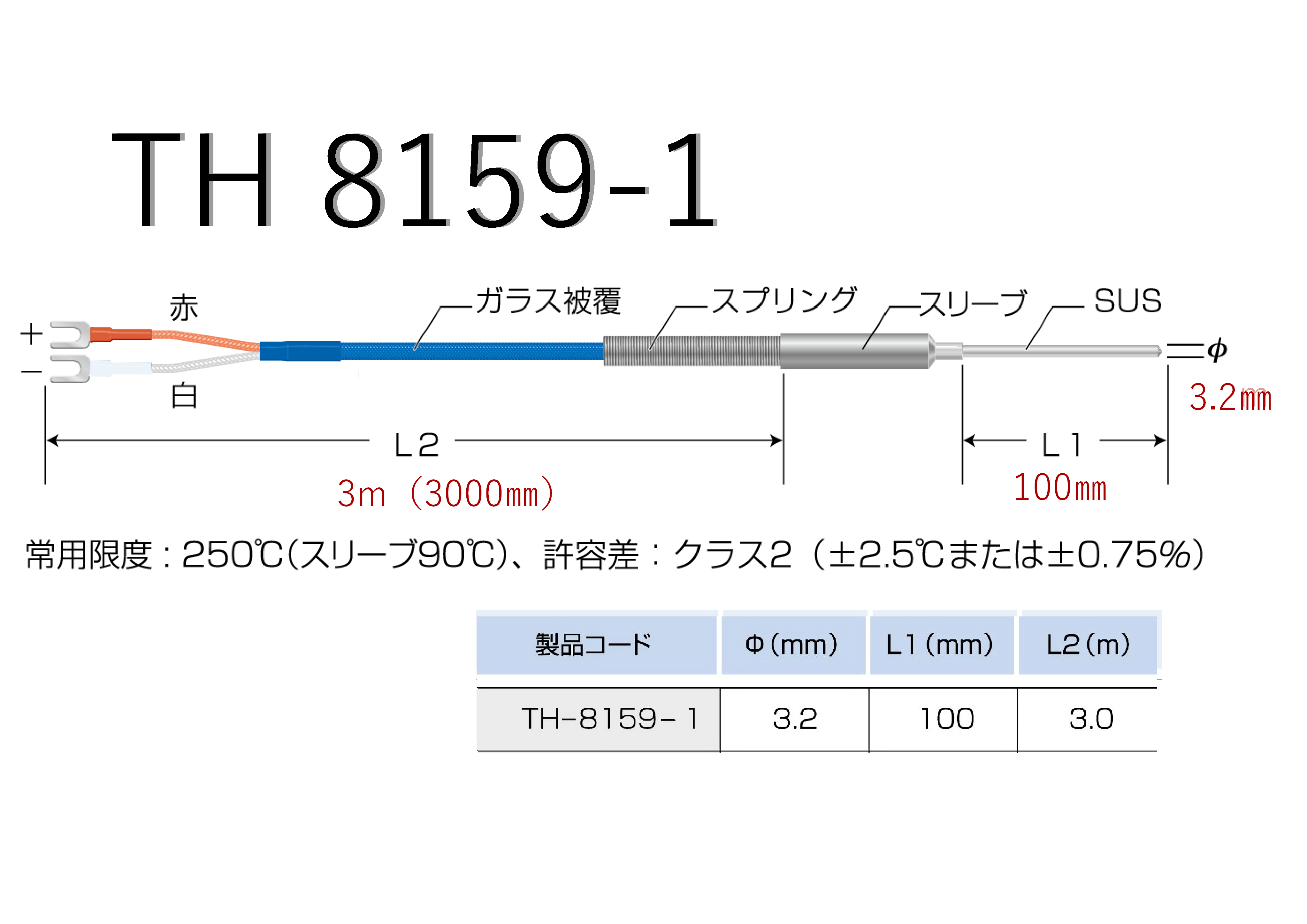 サイズ | φ3.2mm/L1(100mm)/L2(3.0m) |