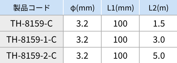 サイズ | φ3.2mm/L1(100mm)/L2(5.0m) |