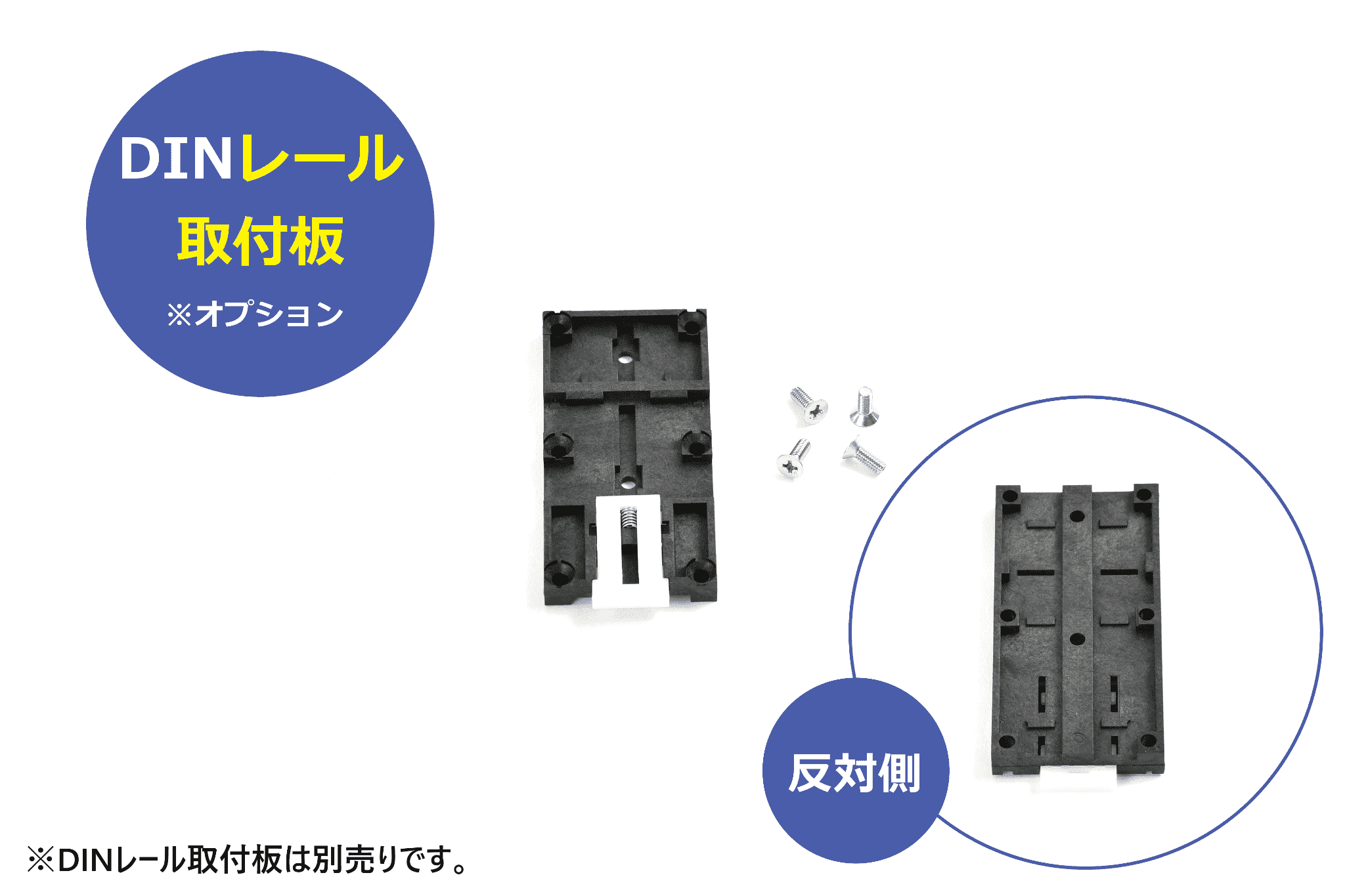 専用の取付板金属板、DINレール取付板をセットで同梱します。個別販売もございます。