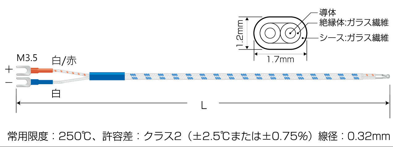 熱電対K先端溶接(デュープレックス)ガラス被覆タイプ TH-8162-20