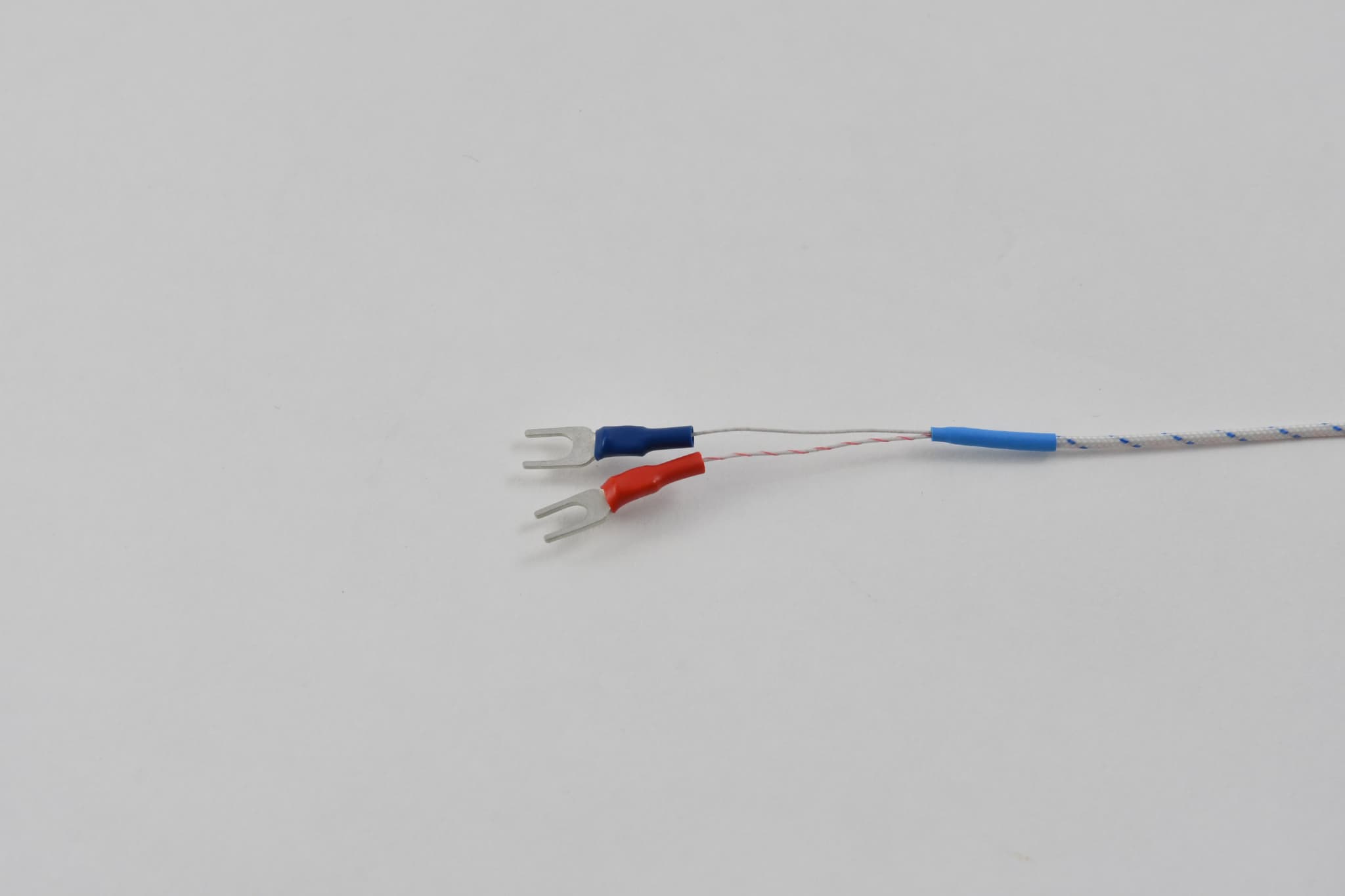 デュープレックス熱電対は、熱電対素線にフッ素樹脂やガラスなどの被覆を施したもので、保護管などには入れずそのまま使用する熱電対です。