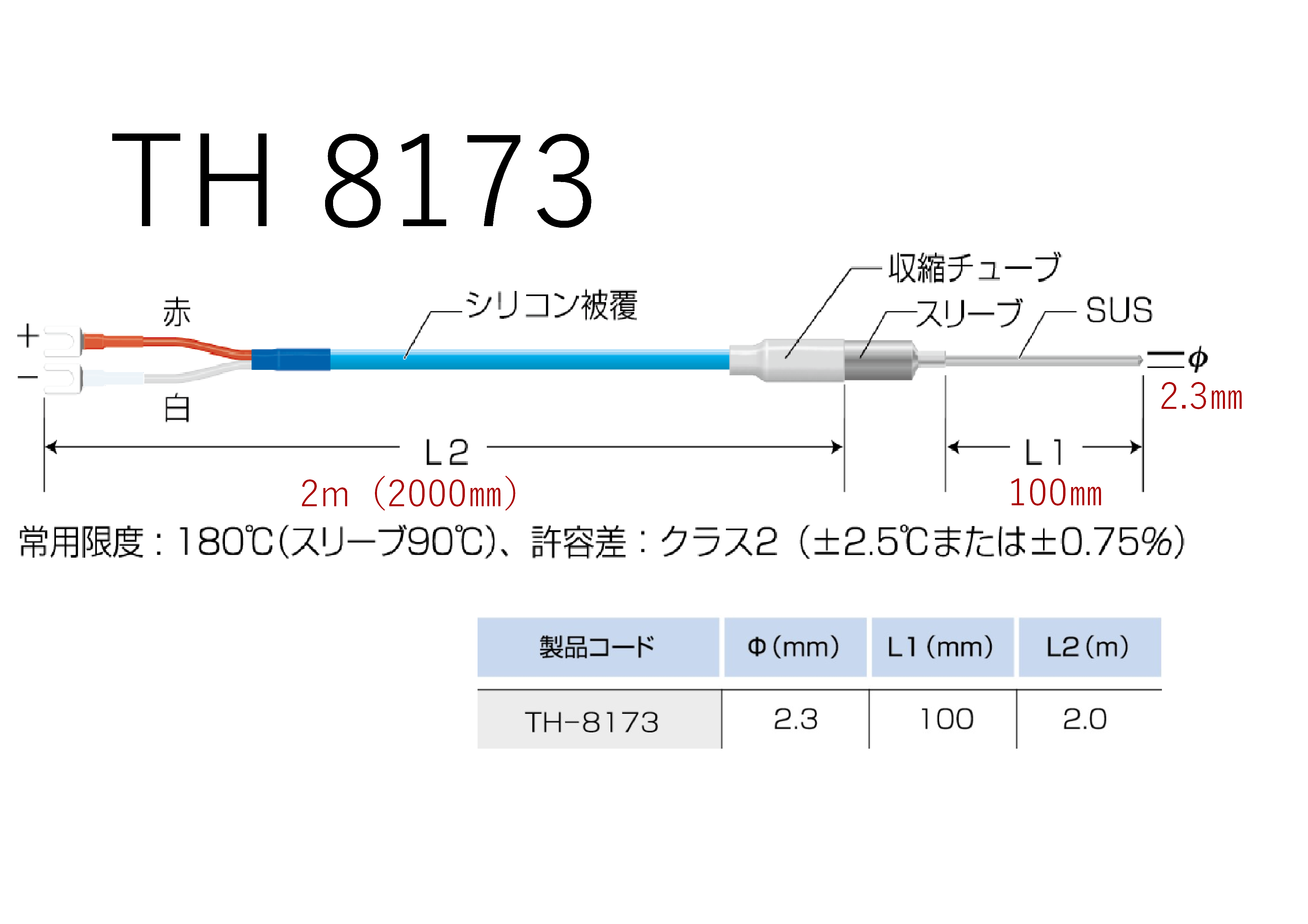 サイズ | φ2.3mm/L1(100mm)/L2(2.0m) |