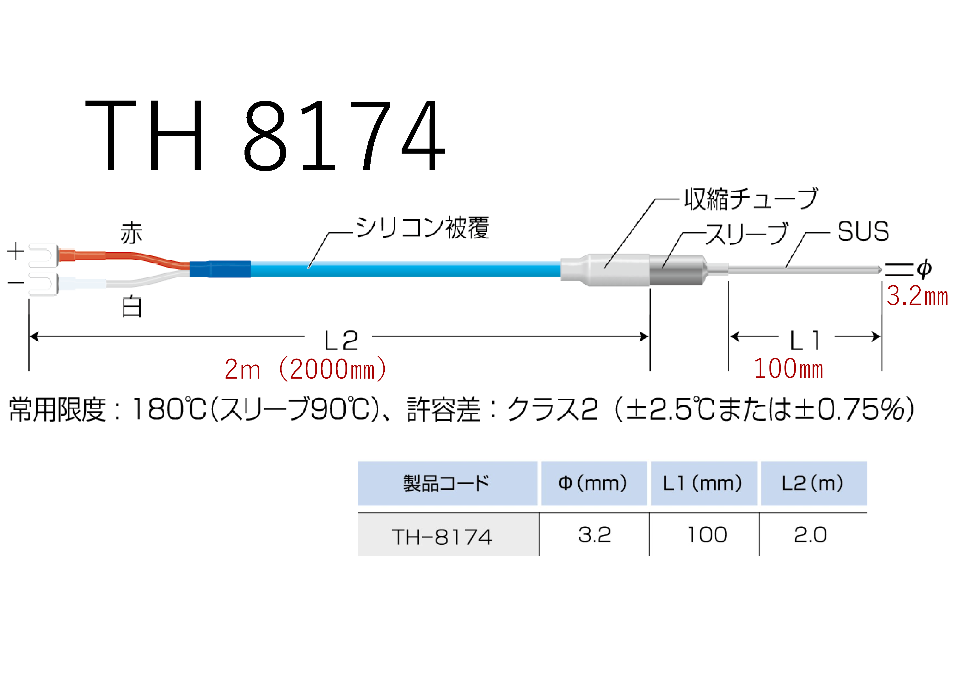 サイズ | φ3.2mm/L1(100mm)/L2(2.0m) |