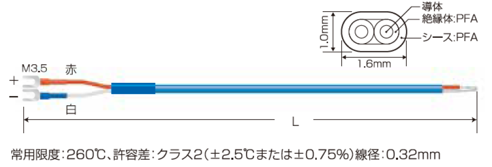 熱電対K先端溶接(デュープレックス)フッ素樹脂被覆タイプ TH-8181-3