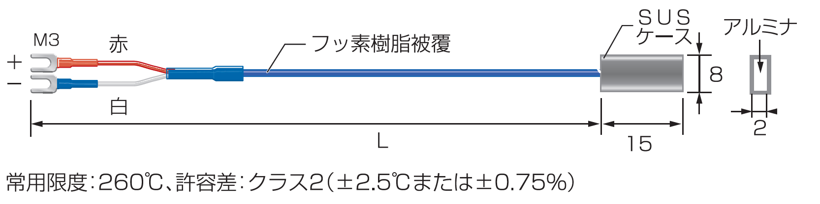 熱電対Kシースタイプ(シングルエレメント)シリコーン被覆 ミニチュアプラグ加工品 TH-8173-C
