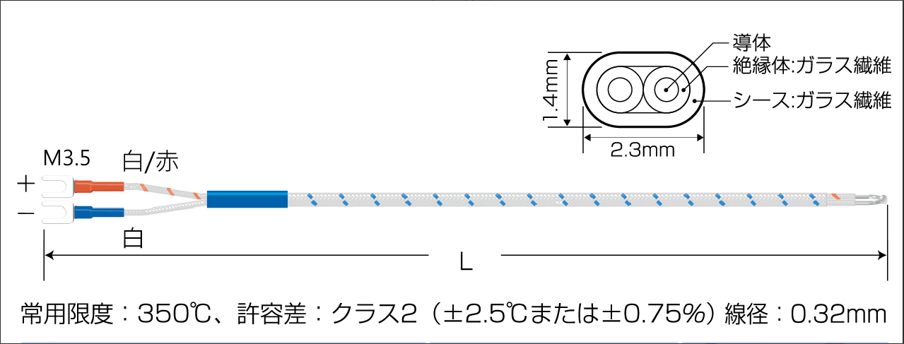熱電対K先端溶接(デュープレックス)ガラス被覆タイプ TH-8294-5