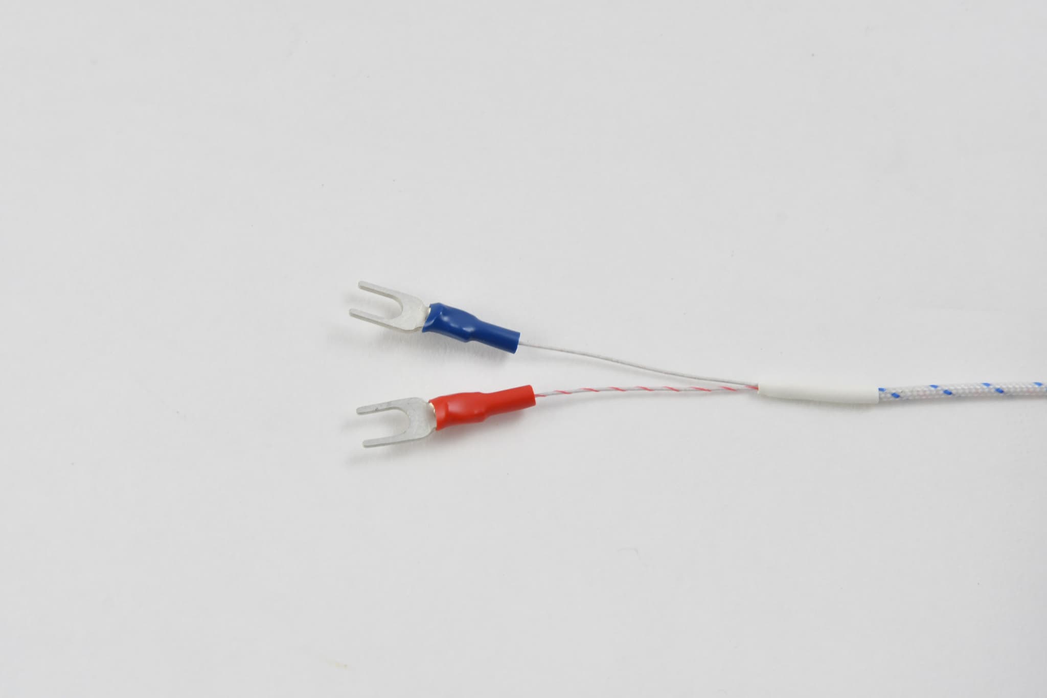 【販売開始予定】熱電対K先端溶接(デュープレックス)シリカガラス被覆タイプ 丸端子加工品 TH-1402-1-M(TH-8292-1-M)