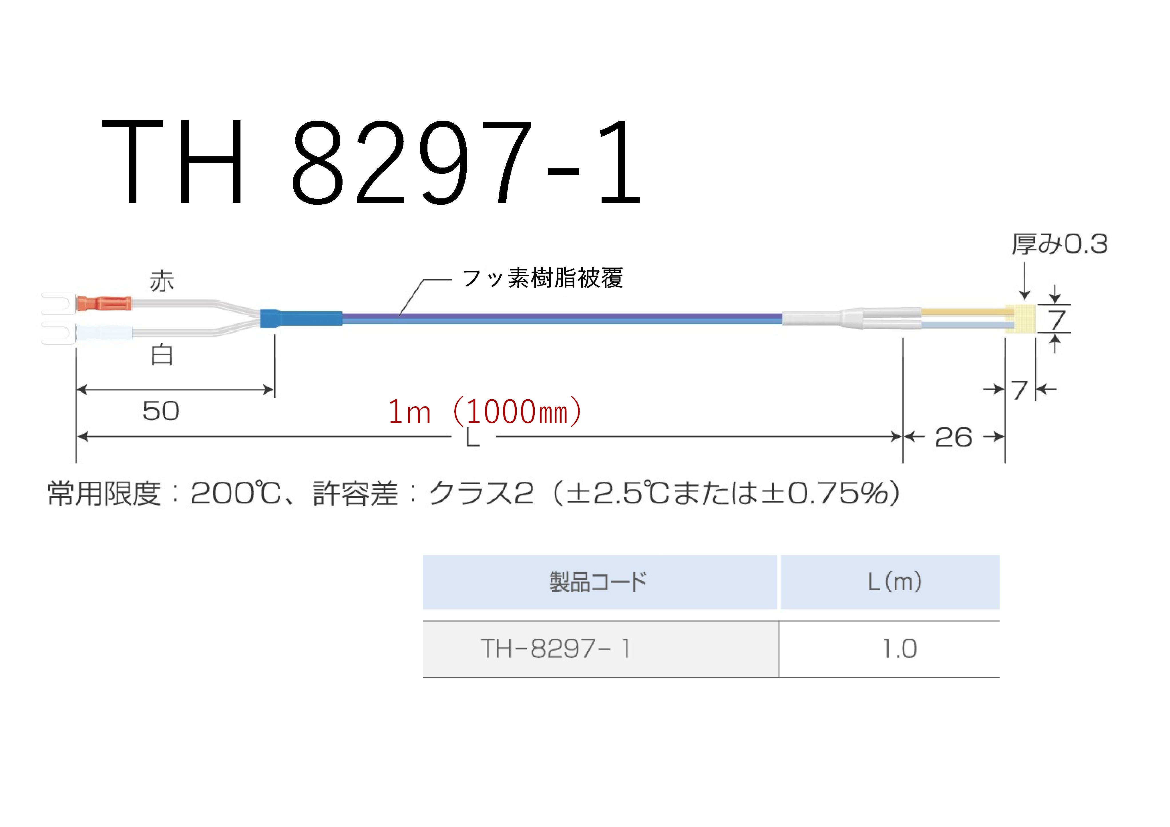 熱電対Kシートタイプ フッ素樹脂被覆 TH-8297-1