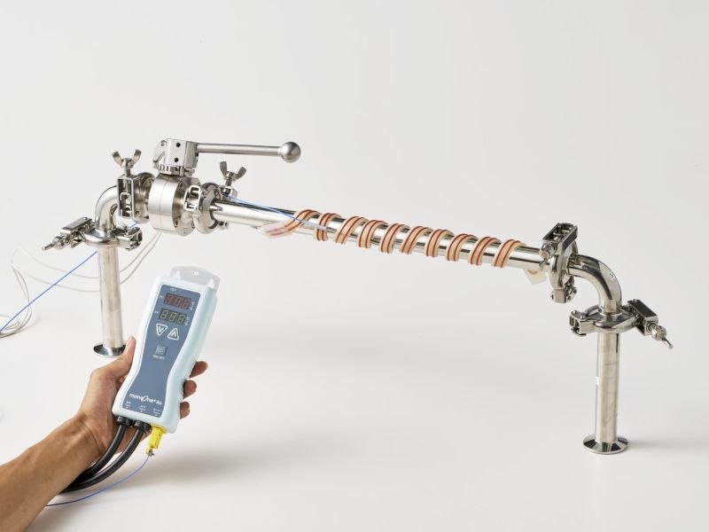 シリコーンスパイラルヒーター、温度コントローラー「monoOne®+Ao」、温度センサー(熱電対K 保護管タイプ)のセット
