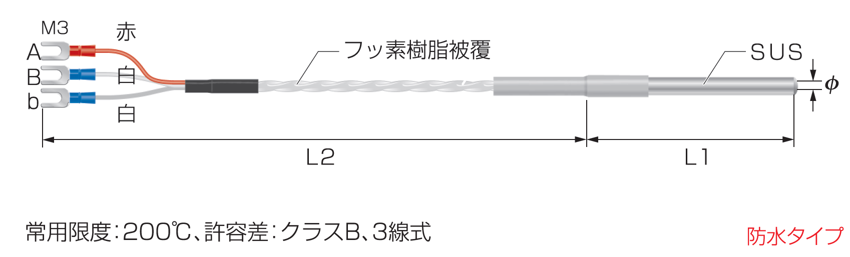 | サイズ | φ4.8mm/L1(50mm)/L2(3.0m) |