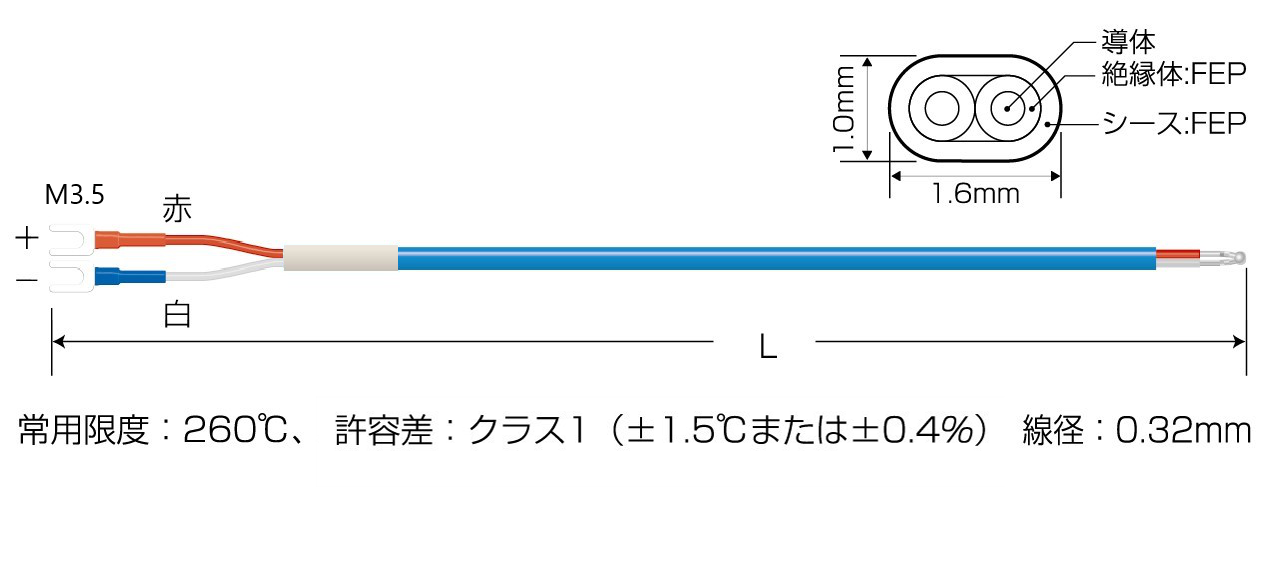 熱電対K先端溶接(デュープレックス)フッ素樹脂被覆タイプ TH-8391-2