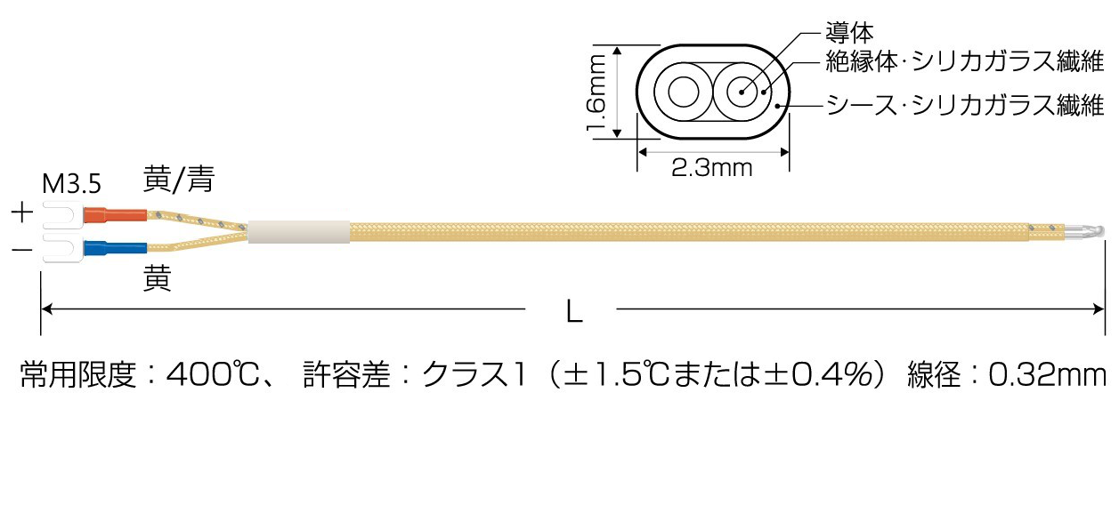 熱電対K先端溶接(デュープレックス)シリカガラス被覆タイプ TH-8396-5