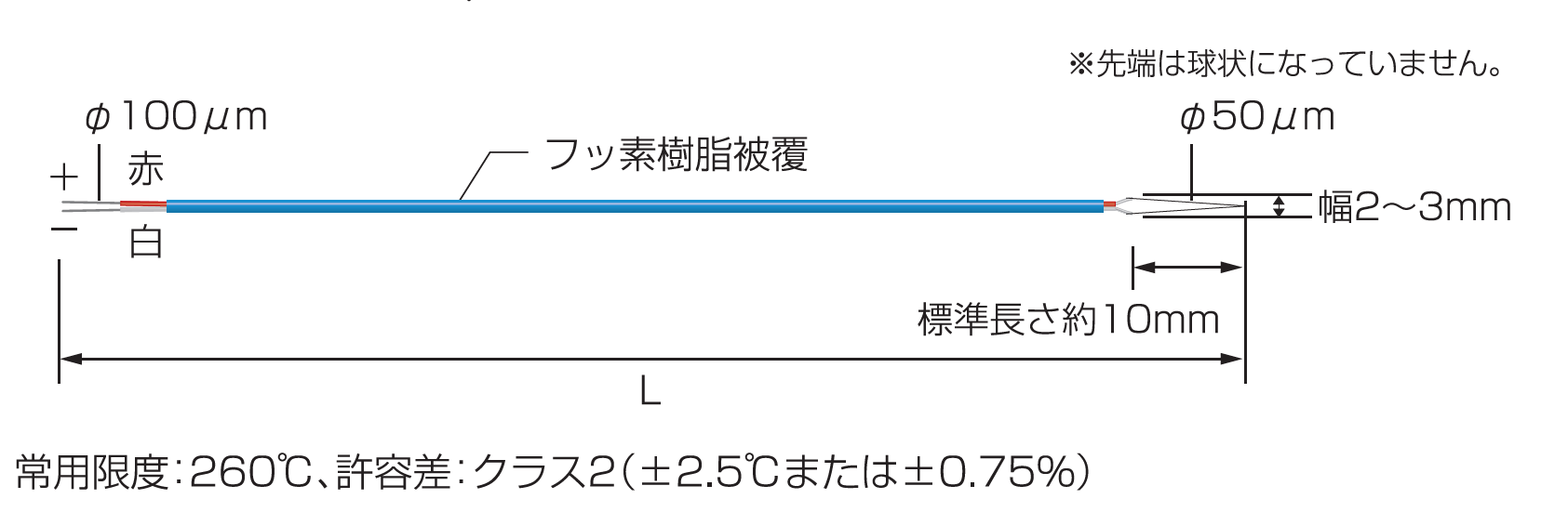 ¥10,500 (税込 ¥11,550)φ2.3mm/L1(100mm)/L2(2.0m) / リード線 2.0m -