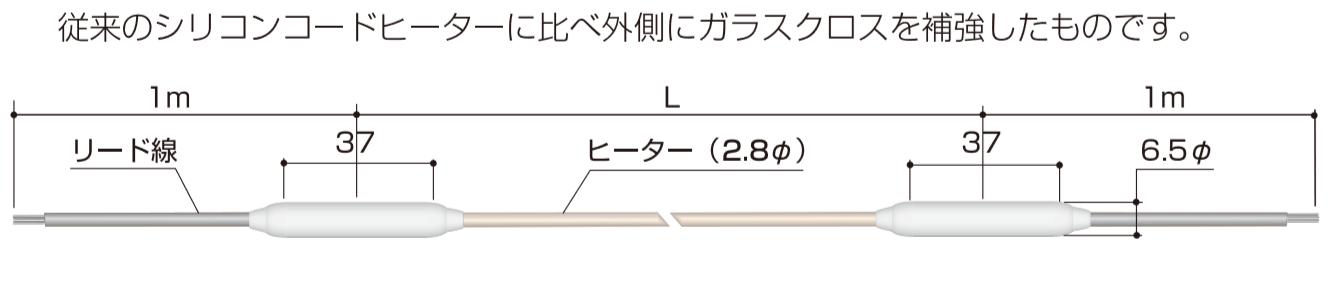 従来のシリコーンコードヒーターの外側にガラスクロスを補強しました。