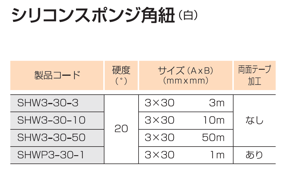 シリコーンスポンジ角紐 白 SHW3-30-10