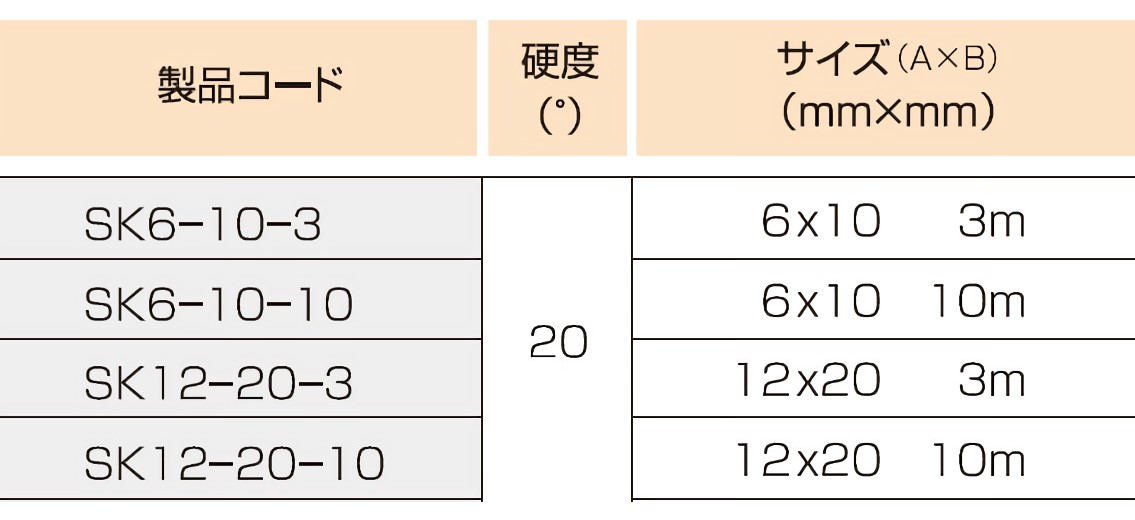 シリコーンスポンジ角チューブ SK12-20-3