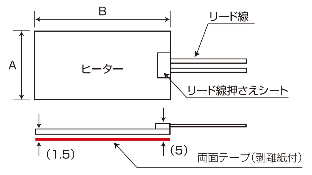 オプションでリード線の延長、熱電対の取り付け、両面テープ付けもできます。
